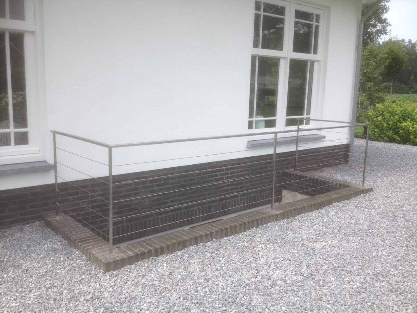 Strakke en duurzame RVS balustrade met knieregels, ideaal voor binnen- en buitentoepassingen. Combineert moderne stijl met extra veiligheid en maatwerkopties!