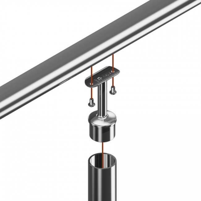 Omschrijving Arm railingsteun insteek voor buis 42,4×2,0 – 42,4 mm, satin K320