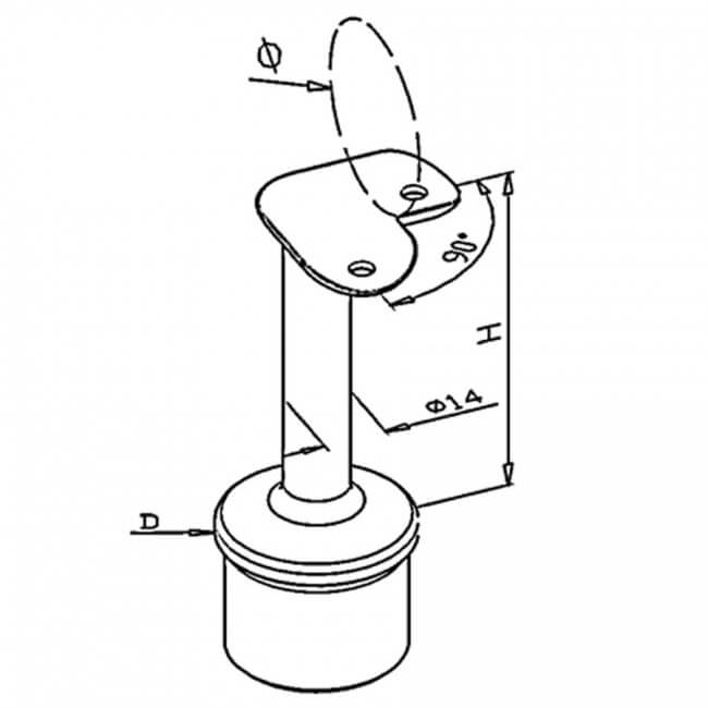 Omschrijving Arm railingsteun 90 GR insteek voor buis 48,3×2,6 – 42,4 mm, satin K320