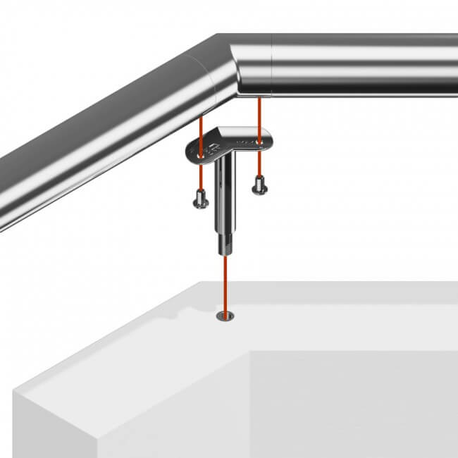 | Omschrijving | Arm railingsteunen M8 -135 GR voor buis 48,3 mm, satin K320 |