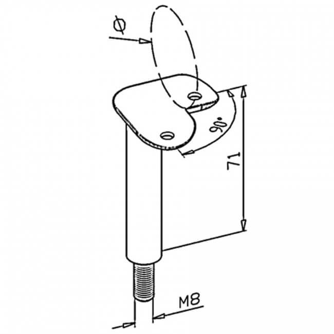| Omschrijving | Arm railingsteunen M8 -90 GR voor buis 48,3 mm, satin K320 |