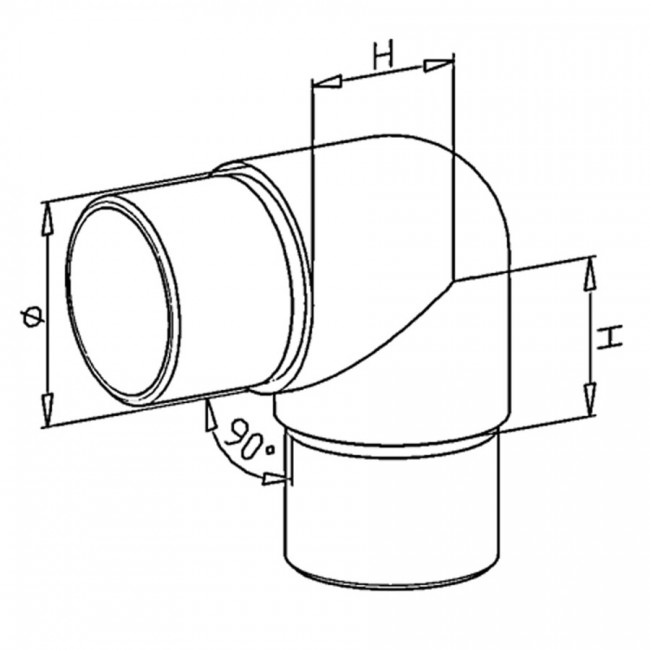 Omschrijving Buisverbinder hoekfitting rond 90 GR 42,4×2,0, satin K320