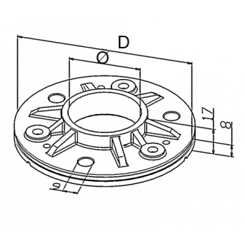 | Omschrijving | Bodem flens RD 115 mm incl. O ring voor buis 48,3 mm |