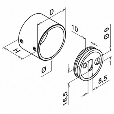 21240405031, Muurflens met blinde bevestiging, buis 42,4 mm, RVS 304, geborsteld