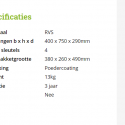 | Brievenbus kleur | Antraciet metallic – Ral 29/80081, Gitzwart – Ral 9005, Blank aluminiumkleur – Ral 9006, Zuiverwit – Ral 9010, Dennegroen – RAL 6009 |
