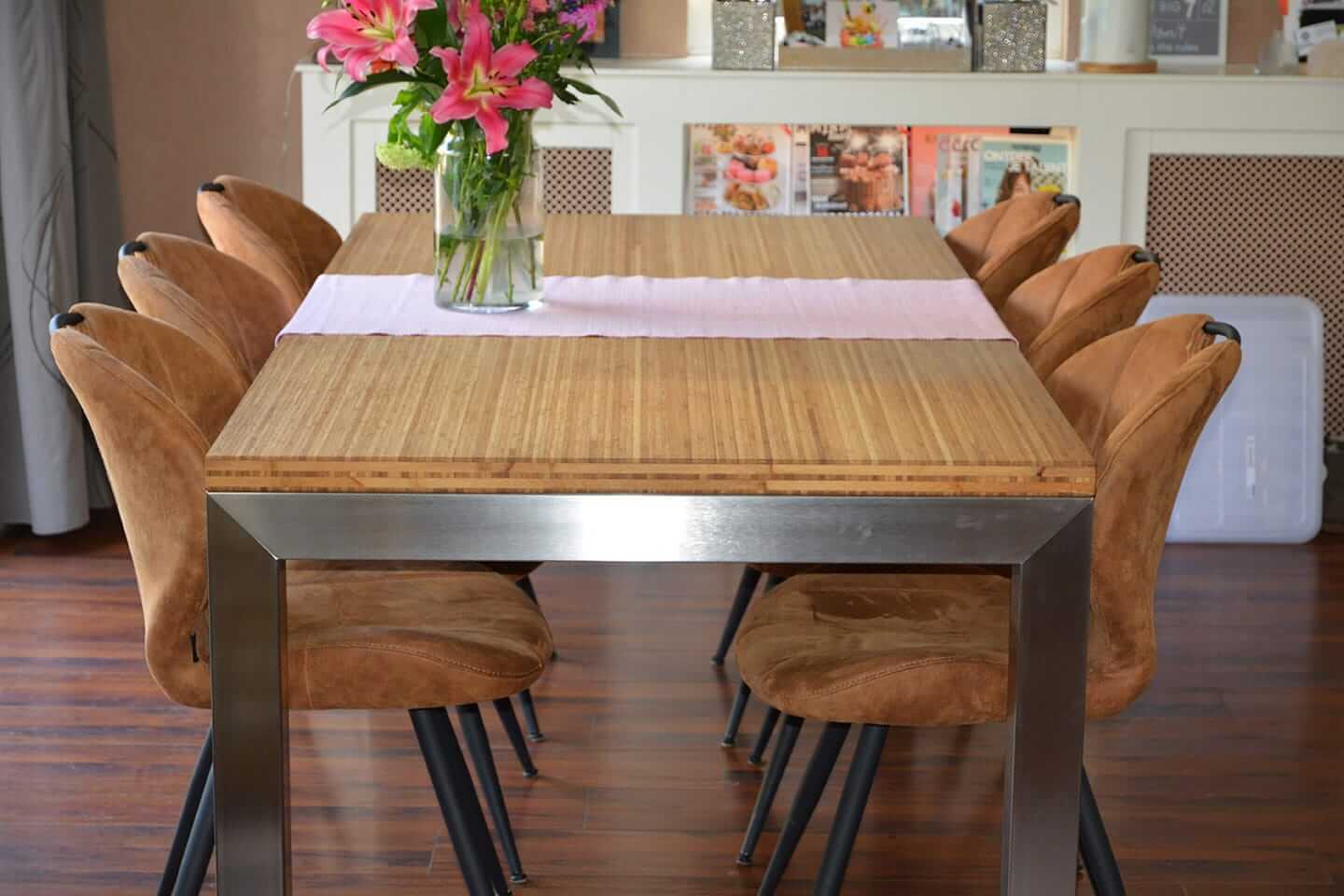 Deze bamboe tafelbladen worden geleverd met ronde kantjes gefreesd r=3mm, geschuurd en rondom geolied.