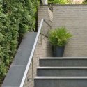 - Rond of gebogen: een afgeronde, roestvrijstalen leuning met een tijdloze uitstraling