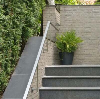 - Rechthoek: een moderne, rechthoekige, roestvrijstalen leuning