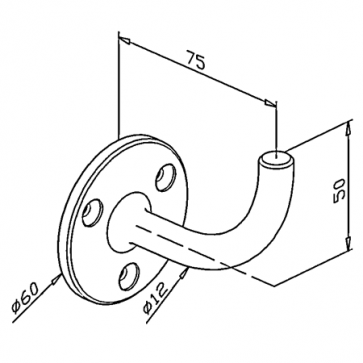 Omschrijving Arm railingsteun wandbevestiging stomp, satin,K320