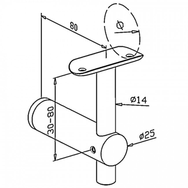| Omschrijving | Arm railingsteun vlak – 48,3 mm, satin K320 |