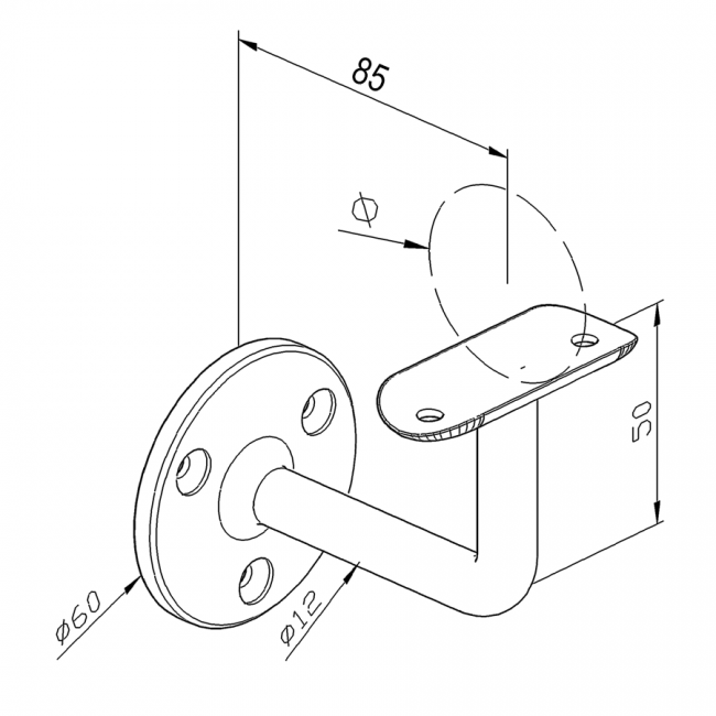 Omschrijving Arm railingsteun wandbevestiging, voor buis Ø48,3, Satin K320