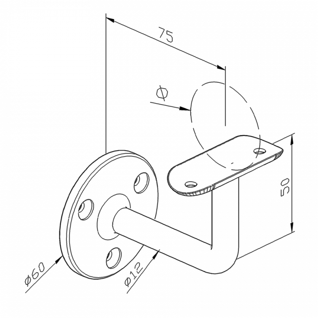 | Omschrijving | Arm railingsteun wandbevestiging, voor buis Ø42,4, Satin K320 |