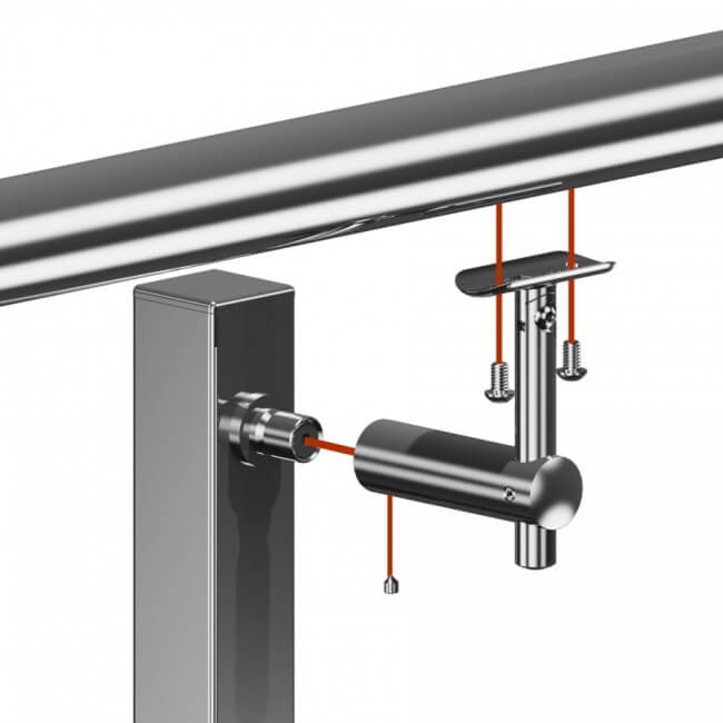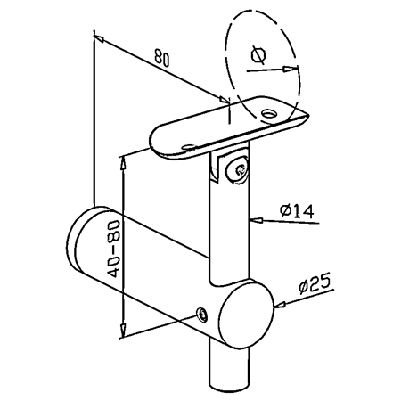 Omschrijving Arm railingsteun variabel voor buis vlak – 42,4 mm, satin K320