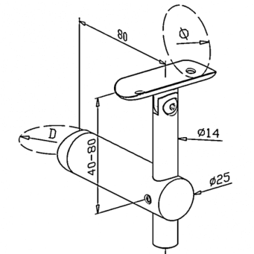 | Omschrijving | Arm railingsteun variabel voor buis 42,4 – 42,4 mm, satin K320 |