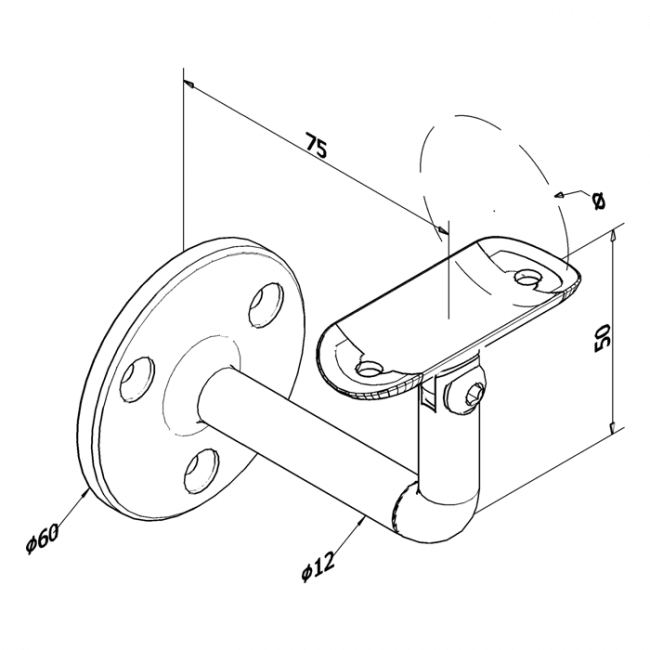 Omschrijving Arm railingsteun variabel wandbevestiging, voor buis Ø48,3, Satin K320